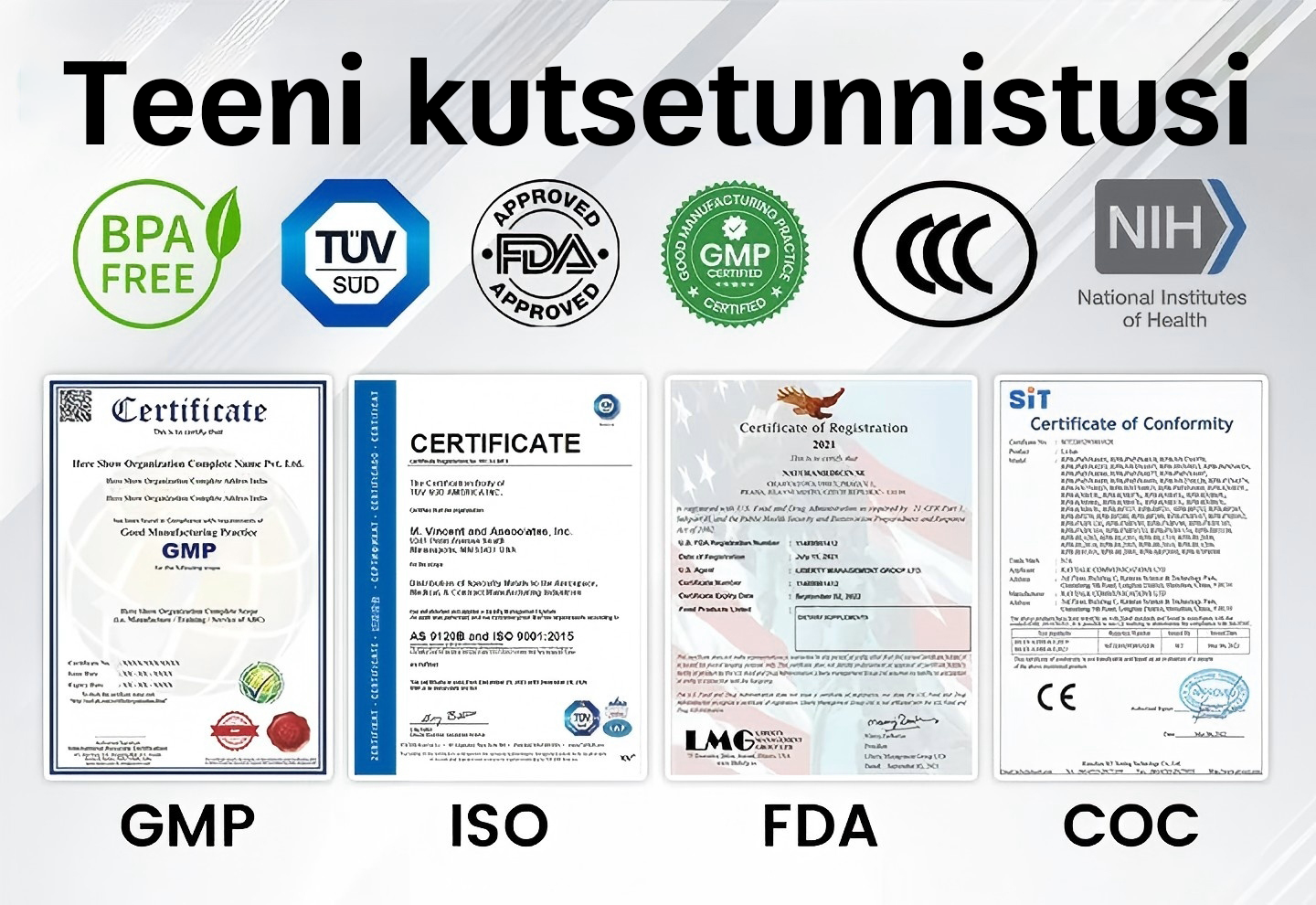 Mitmed sertifikaadid: FDA, CE, ISO 13485, GMP