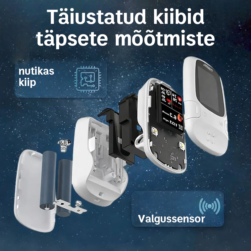 Tänu täiustatud tehisintellektil põhinevale tehnoloogiale ja võimsale kiibile on Omron™ veresuhkru mõõtjad kolm korda täpsemad kui tavalised seadmed, pakkudes usaldusväärseid ja täpseid näite.