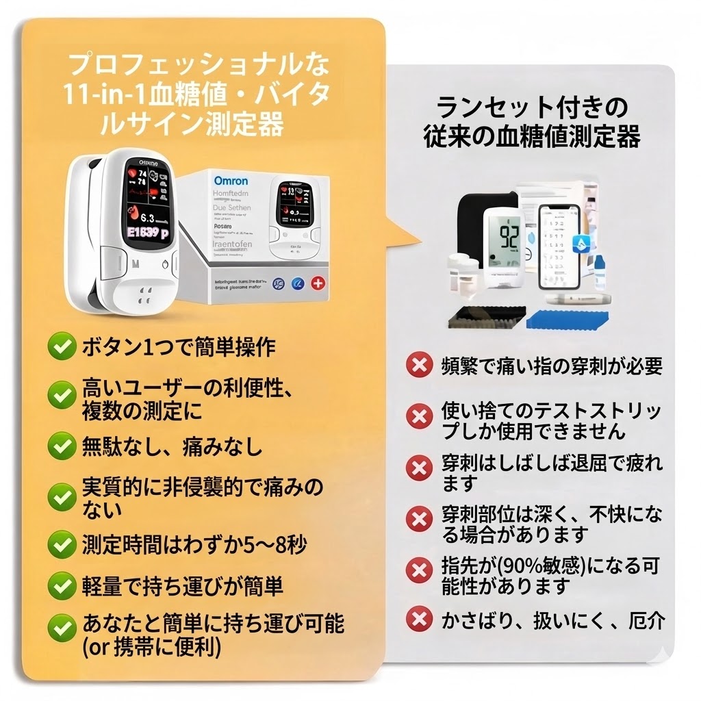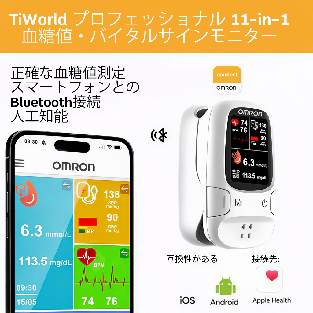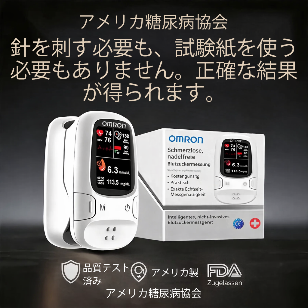 極めて安全で、従来の試験紙の3倍の精度:Omron™で血糖管理が簡単になります!
